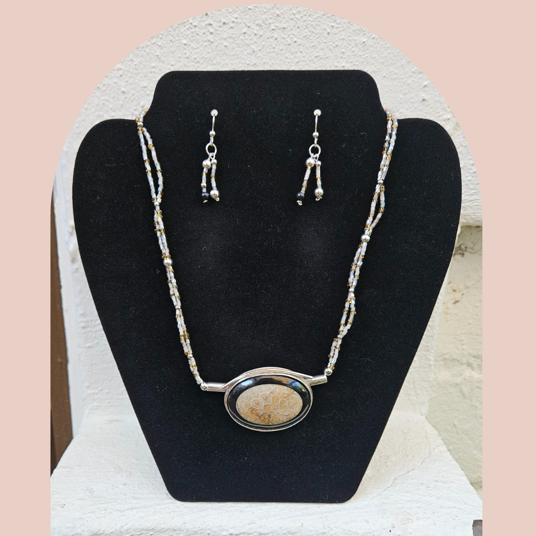 Jewelry Set | Fossil Pendant Necklace & Beaded Earrings