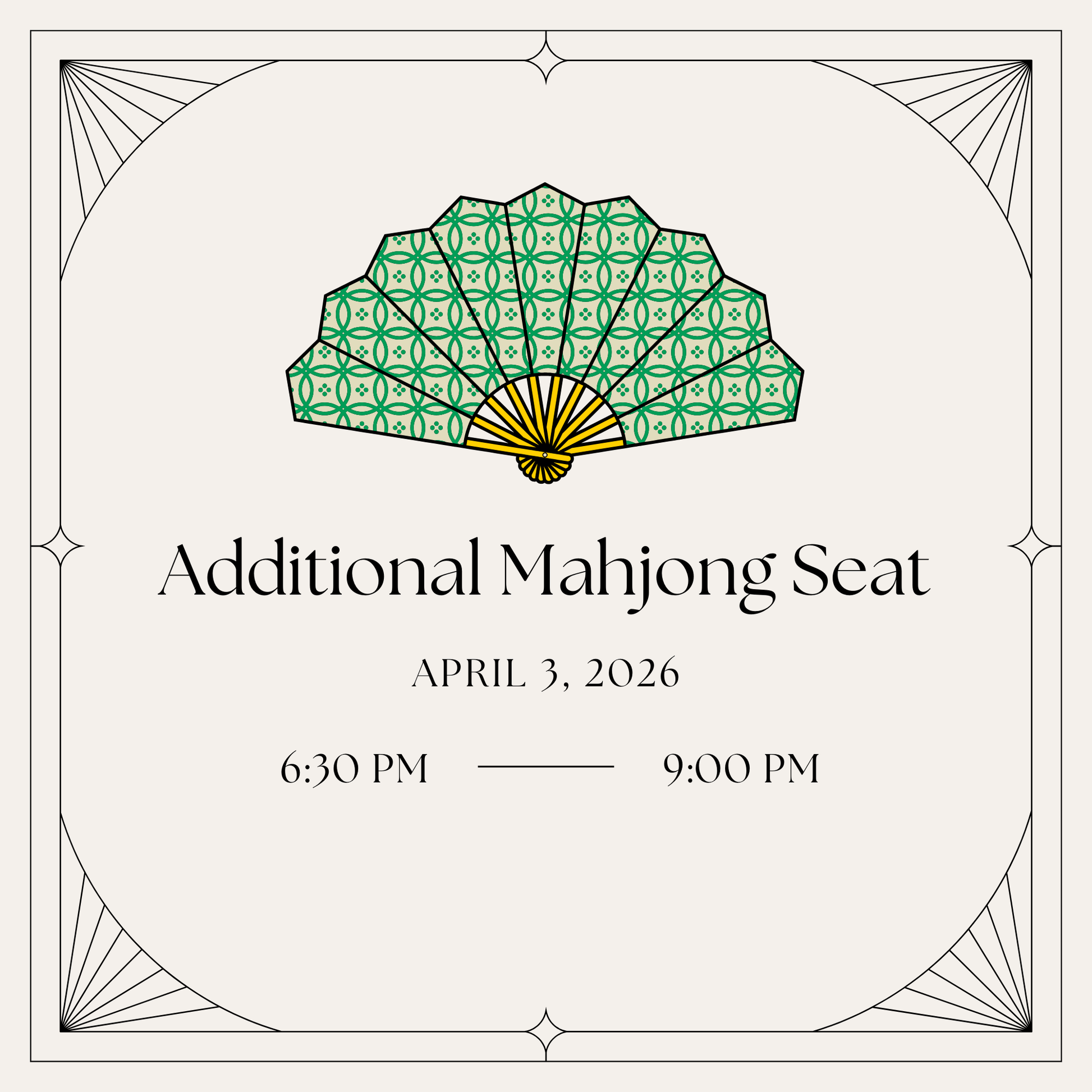 This listing is for one additional Mahjong seat during The Social Bevy on Friday, April 3. This option is intended for: